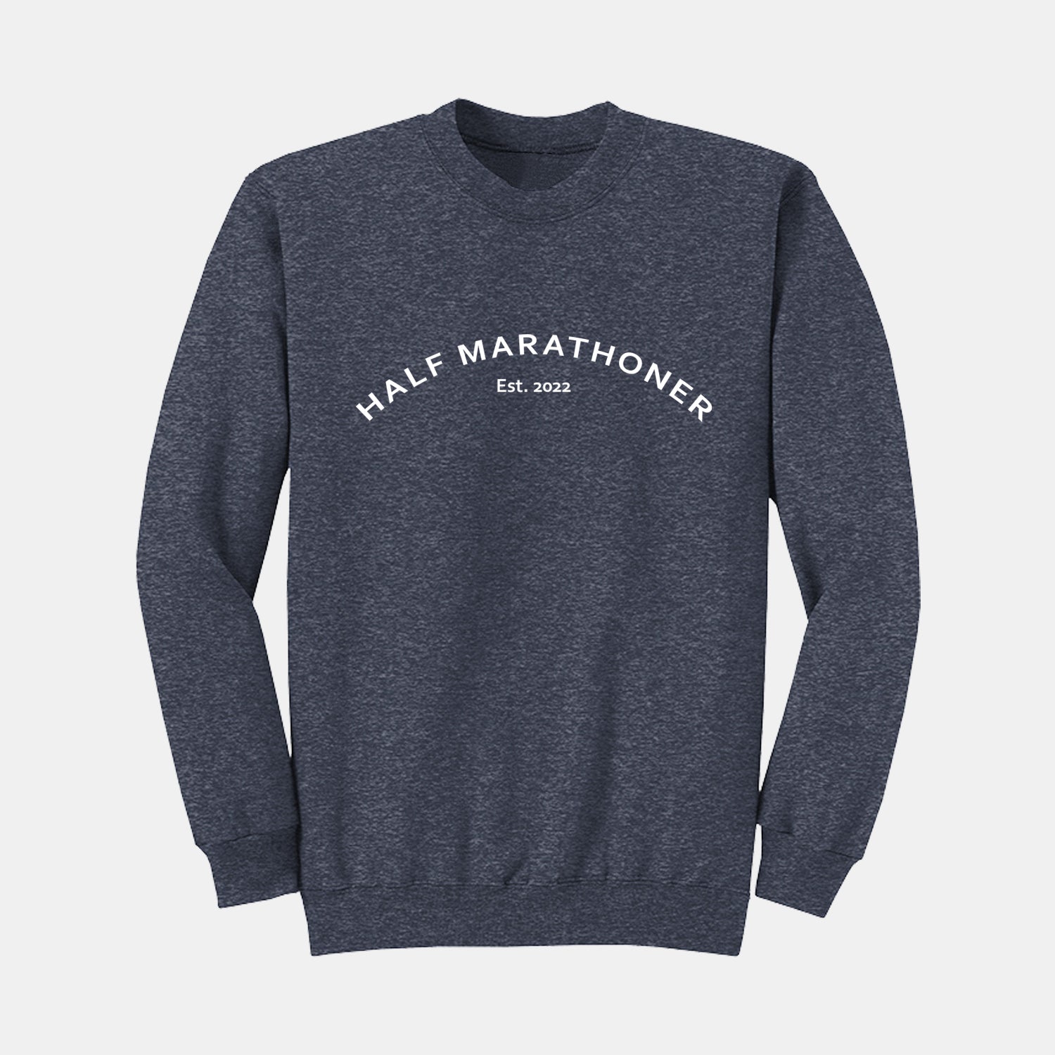 Customize your crew & show off when you became a half marathoner! If you ran your first half marathon in 2022, the Half Marathoner Est. 2022 crew is just for you! The Half Marathoner Est. Crew is perfect for running, biking, or wear out with friends. Life of Running crew's are designed to keep you comfortable through all of life's great adventures.